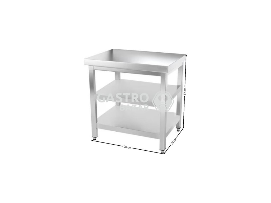Nerezový pracovný stôl PREMIUM s dvoma policami bez zadného lemu 0,7 m