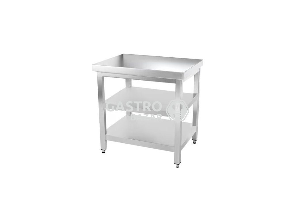 Nerezový pracovný stôl PREMIUM s dvoma policami bez zadného lemu 0,8 m
