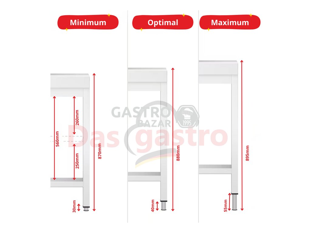• Výškovo nastaviteľné nohy pre optimálne prispôsobenie pracovnému priestoru