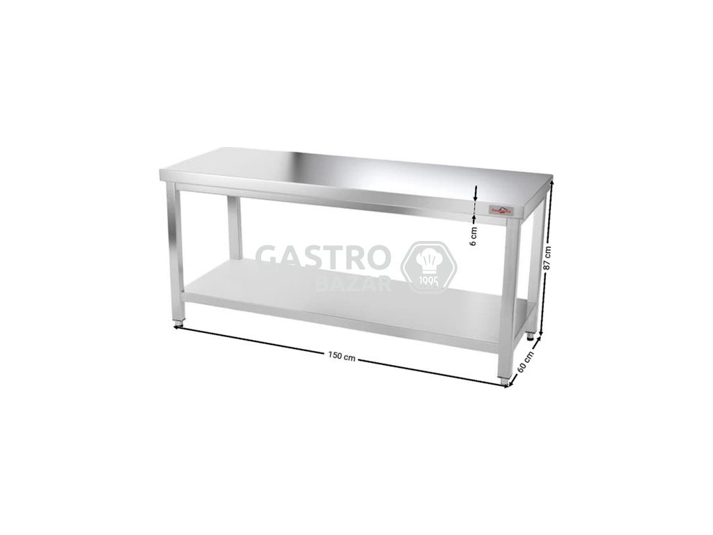 Nerezový pracovný stôl so spodnou policou bez zadného lemu - 1,5 x 0,6 m