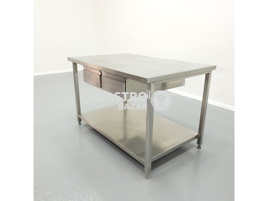 Použitý nerezový stůl 2x šuplík, dolní police