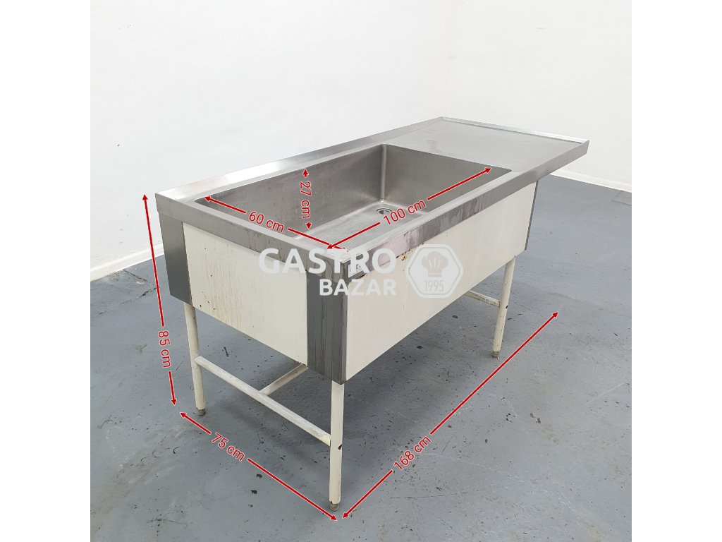 Kovový stůl s nerezovým dřezem 168x75x85cm