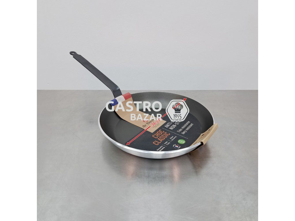 Pánev CHOC s teflonovým povrchem je perfektní volbou pro rozehřívání, ohřívání nebo smažení delikates z vaší kuchyně a díky nízkým okrajům s dokonalou lehkostí naservírujete jídlo na talíř. Zesílené dno garantuje jeho hladkost i plochost - dvě nejdůležitější vlastnosti při zahřívání povrchu. Špičkové provedení pánve se odráží na její kvalitě a odolnosti (zvládne i hrubší zacházení). Zakřivení rukojeti zrcadlí francouzský styl, proto se jednoduše drží a zároveň vydrží vysoké teploty.