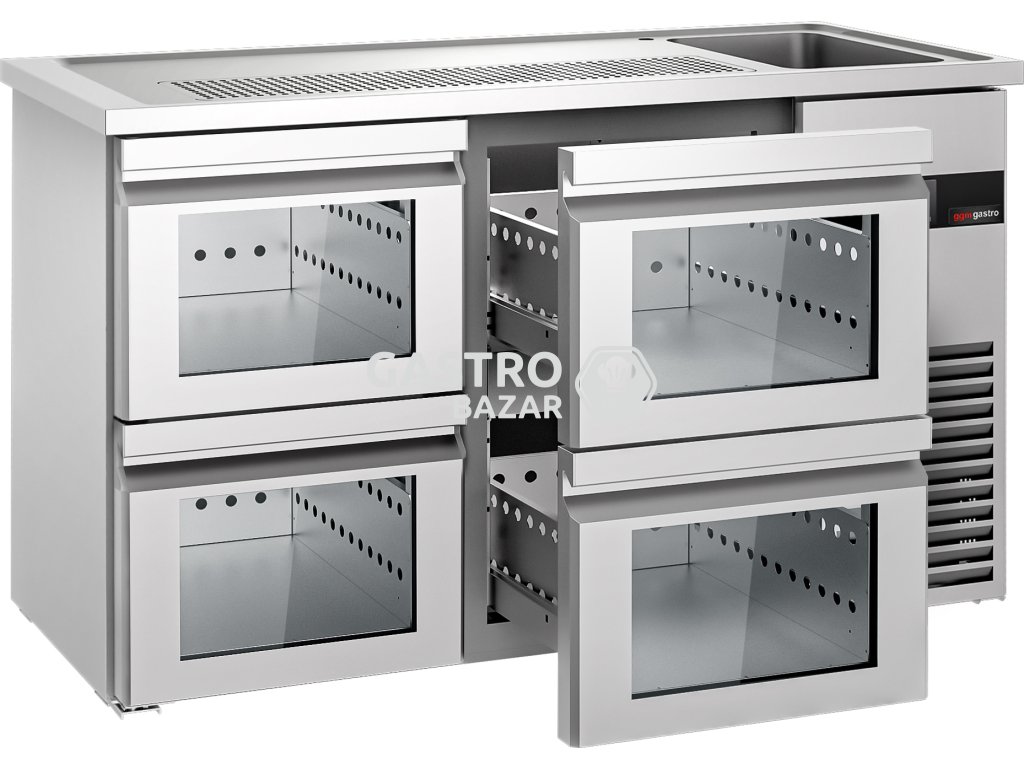Pivný pult 1,55 x 0,7 m - so sklenenými zásuvkami 2x1/2 a 3x 1/3
