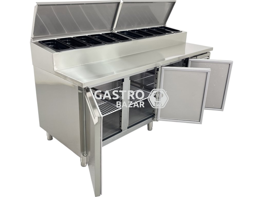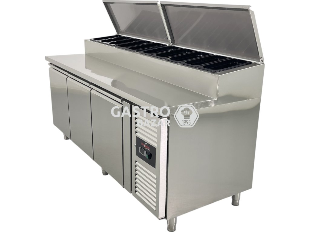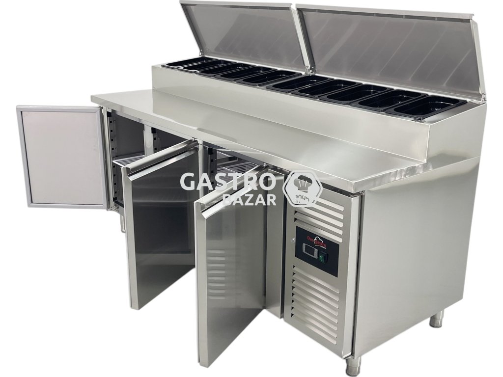 Profesionálny chladiaci stôl s pracovnou plochou je ideálnym riešením nielen pre pizzérie, ale aj pre pekárne, cukrárne a ďalšie gastro prevádzky, kde je kľúčová efektívna príprava a uchovanie surovín. Kombinuje praktický úložný priestor s robustnou pracovnou plochou a presným chladením.