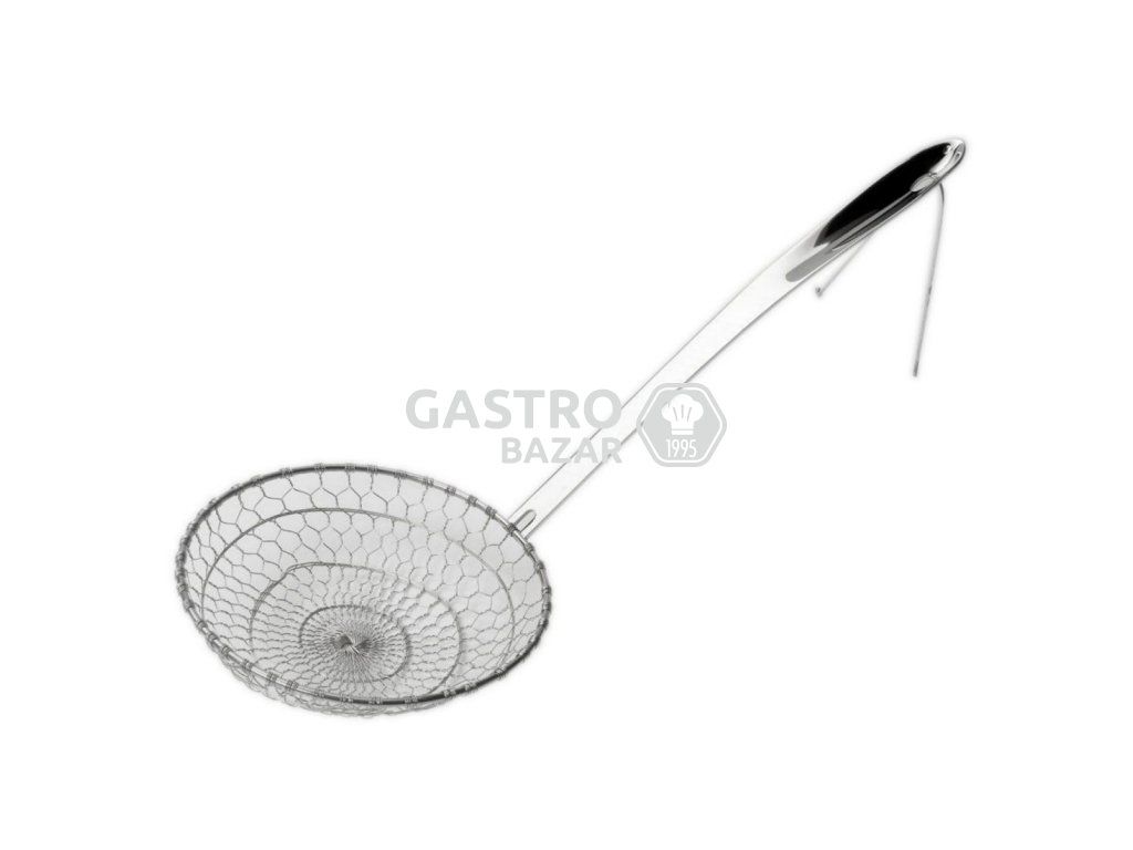 Profesionální nerezový podběrák pro gastro provozy. Vhodný k použití jako podběrák na maso a zeleninu. Podběrák je vyroben z nerezu, má průměr 34,5cm a délku 50cm.