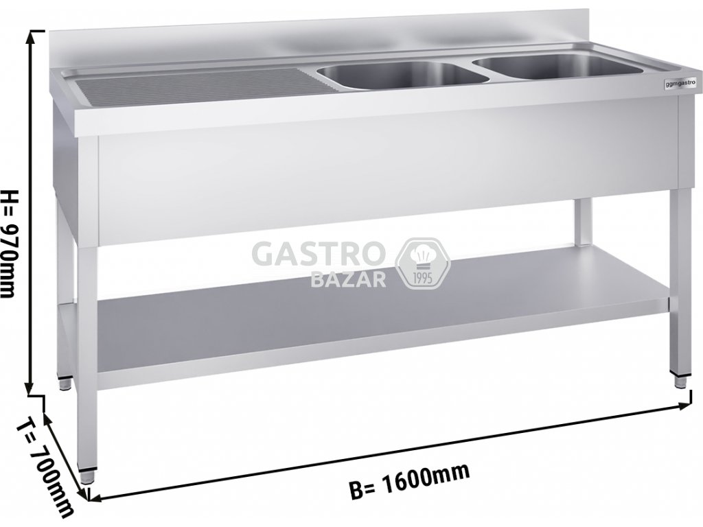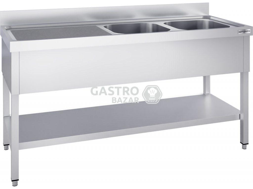 PREMIUM nerezový drez - s policou - 1,6 m - 2 drez vpravo - d 50 x š 50 x h 30 cm