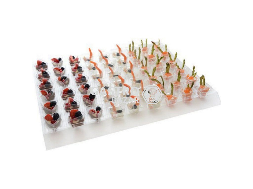 Délka 53cm, šířka 65cm, výška 4cm. Materiál akryl. Určeno pro 54 misek: GSD-168328-29. Určeno pro 3 misky: GSD-159721, GSD-157491, GSD-159722, GSD-157492, GSD-123454, GSD-157497, GSL-PS58003, GSL-PS32163.