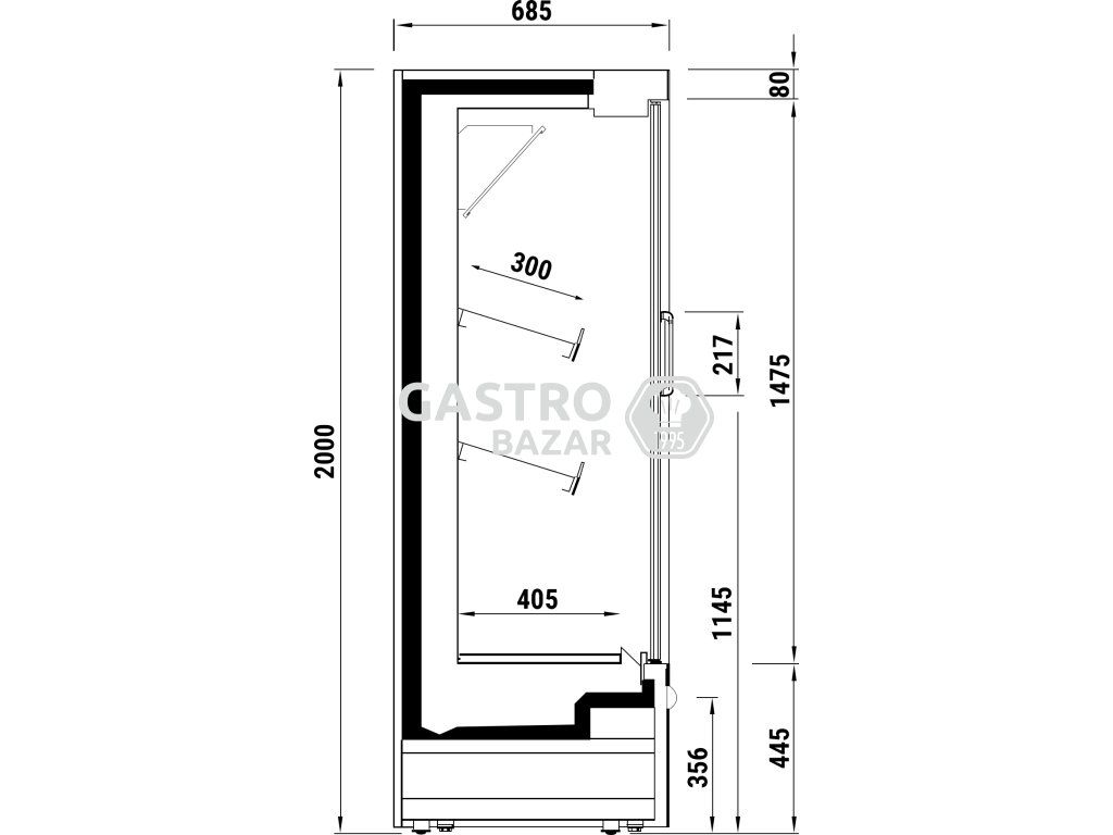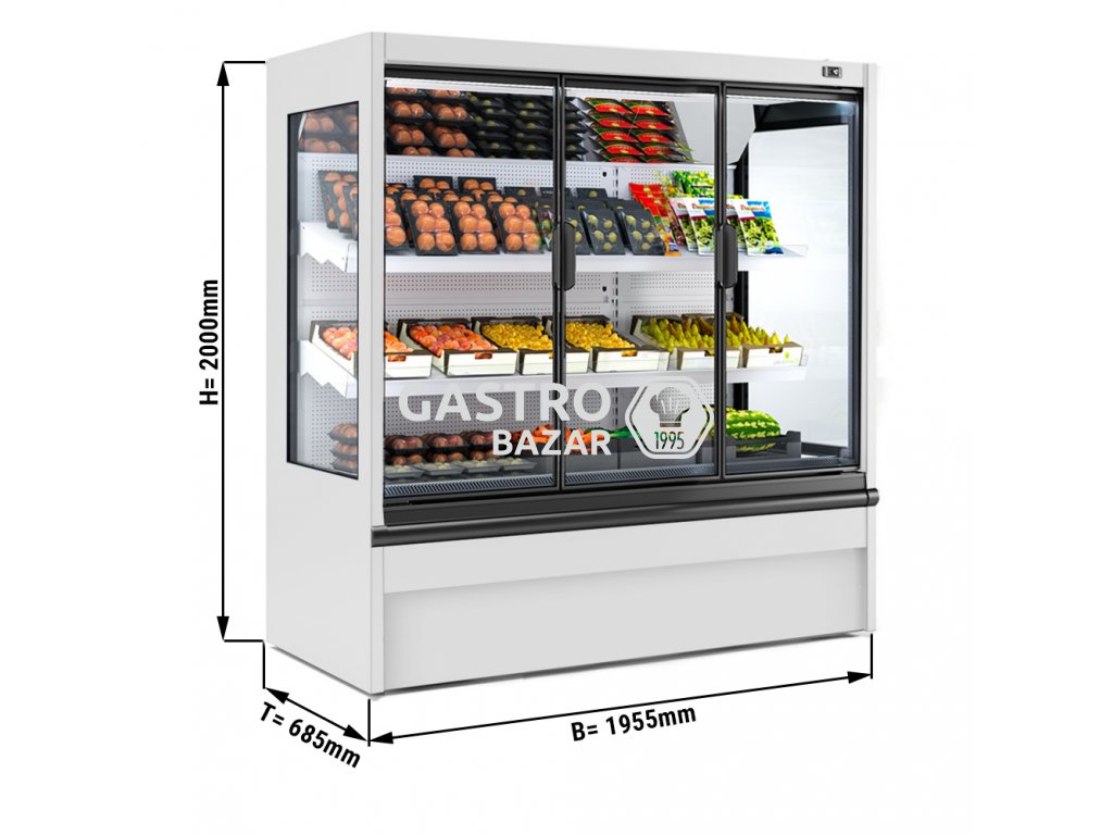 Prístenná chladiaca vitrína - 1,96 x 0,68 m - s 2 policami - biela