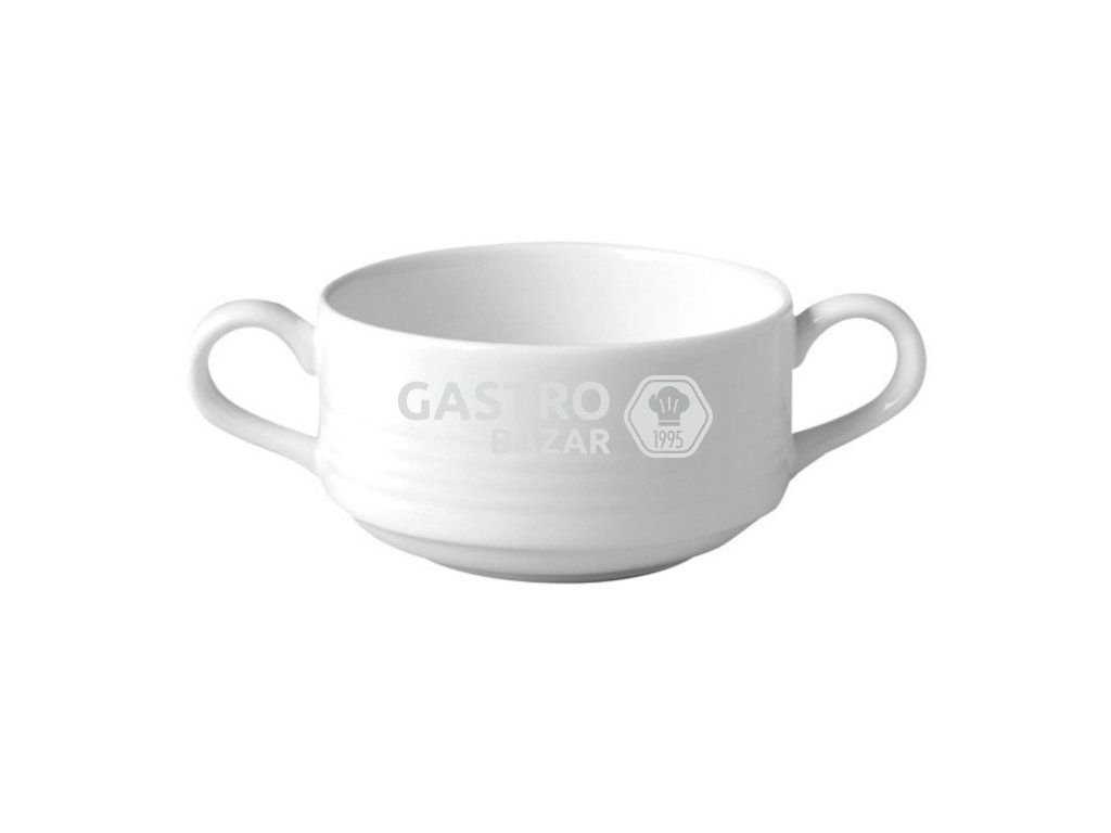 Šálek na polévku poznáte na první pohled podle elegantního designu doplněného o kruhové linky. Vzhled ale není jedinou jeho předností. Další výhodu představuje i vysoká odolnost, která zaručuje dlouhou životnost. Proto se šálek perfektně hodí do rušných provozů, kde se dveře nezavřou. Jeho dvě ucha usnadňují servírování.