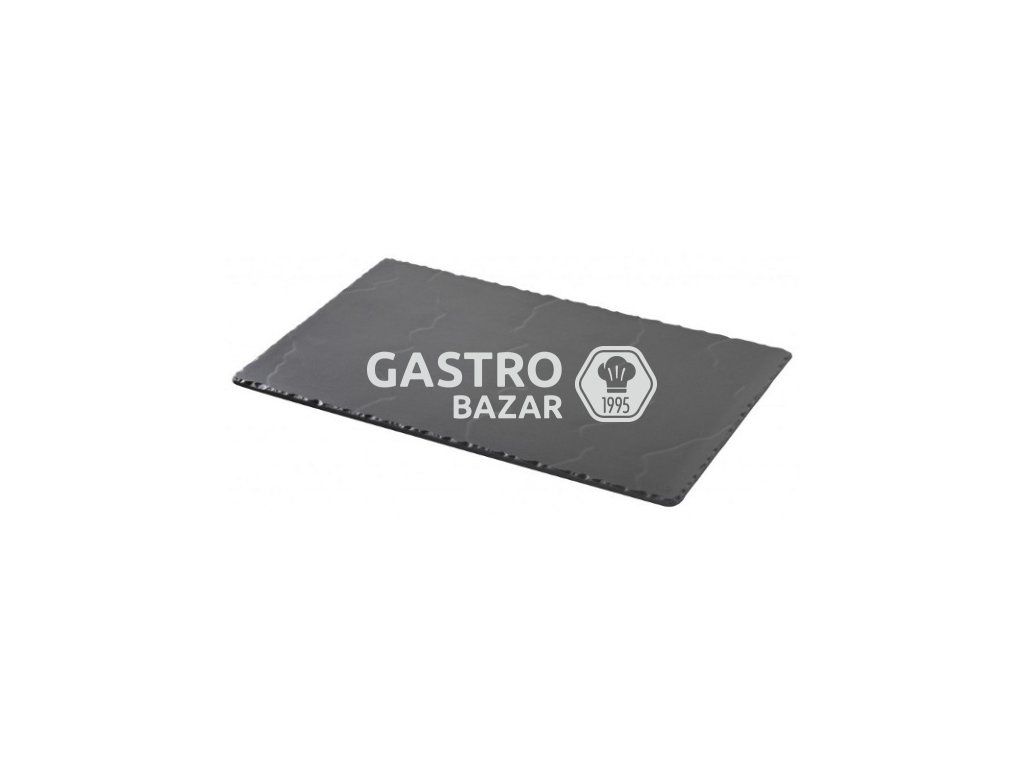 Basalt tác obdélný spojuje půvab břidlice s výhodami porcelánu tak, aby splnil náročné požadavky profesionálních šéfkuchařů. Představuje perfektní volbu při prezentování lahůdek, sýrů, tapas nebo malých dezertů. Ať už na něj položíte cokoliv, díky jeho délce se na něj všechno vleze všechno a jeho originální design dodá vaší prezentaci nádech dokonalosti. Pro větší eleganci doporučujeme tác doplnit dřevěnou deskou REV-645198.