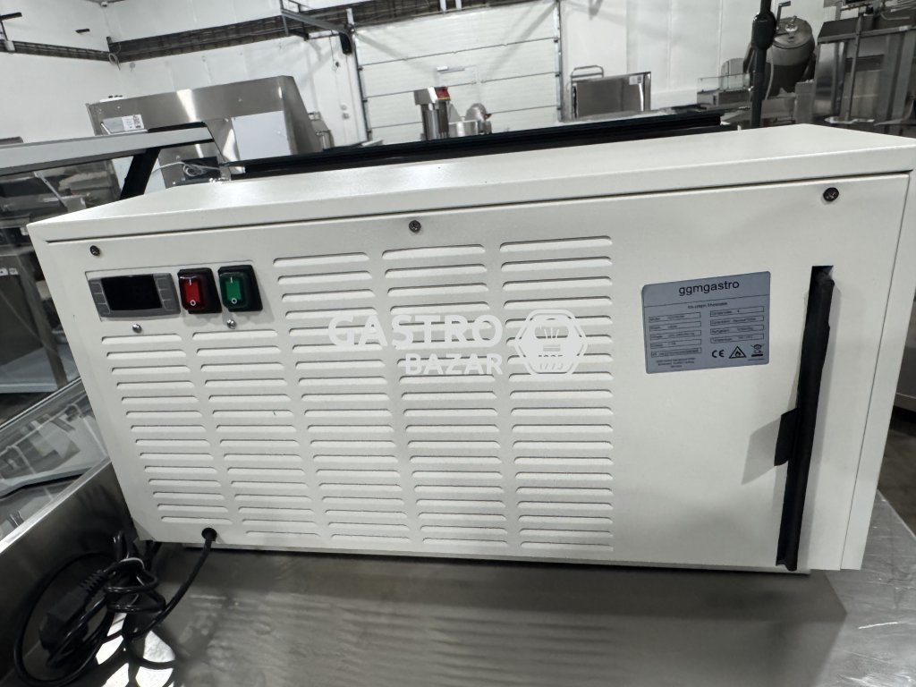 Stolní vitrína na zmrzlinu - 670mm - statická - pro 3x 5L nádoby - otevírání krytu na straně zákazníka
