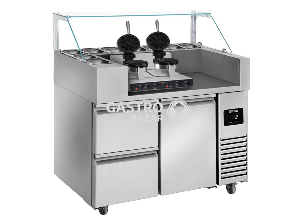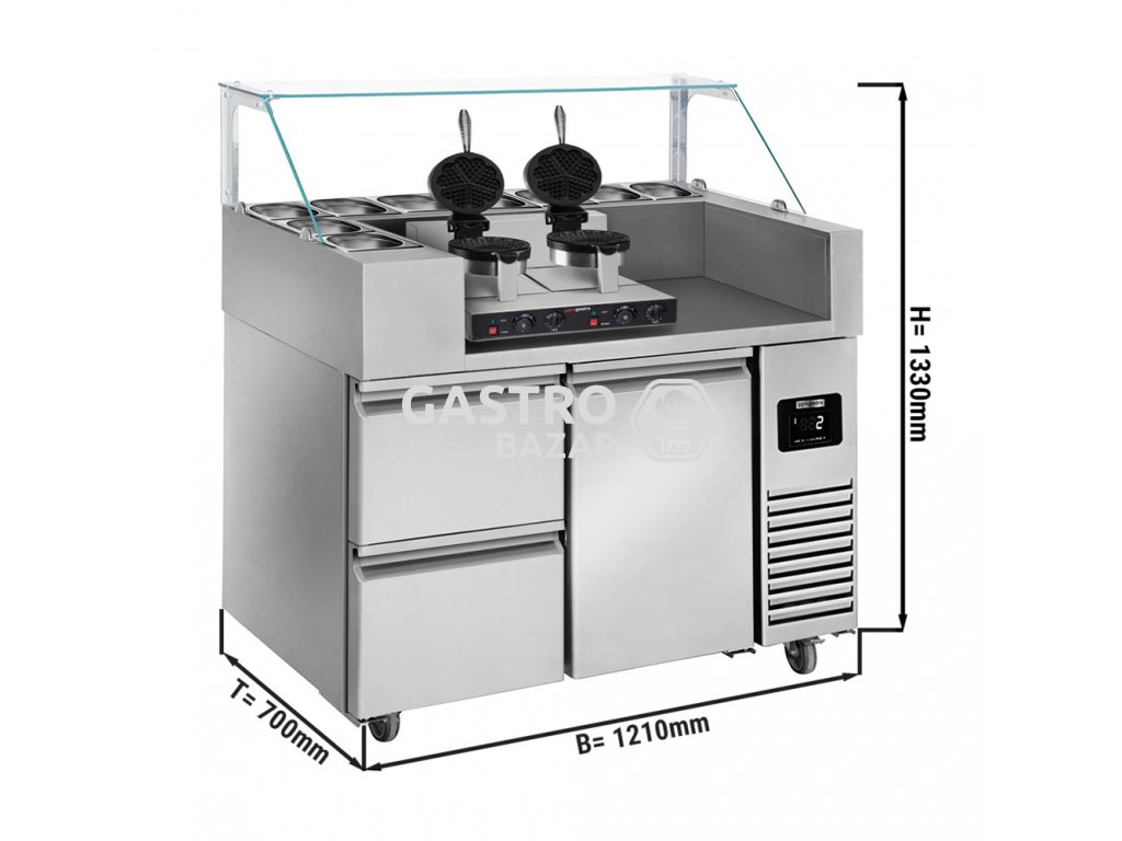 Stůl - přípravný - 1,21 x 0,7 m - s 1 dveřmi a 2 zásuvkami 1/2 - včetně waflovače- tvaru srdce