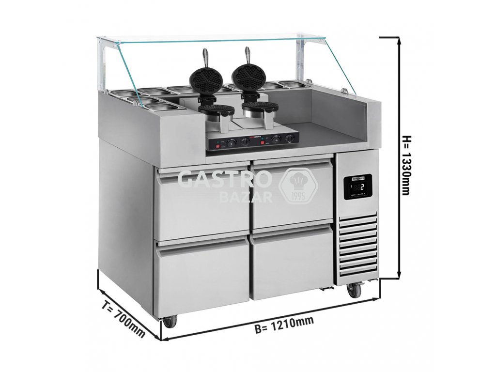 Stůl - připravný - 1,21 x 0,7 m - se čtyřmi zásuvkami 1/2 - včetně vaflovače - tvaru srdce