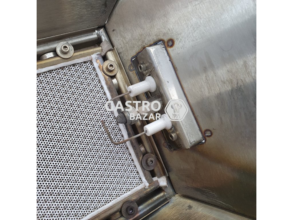 Světlé infrazářiče dodávají teplo z keramických destiček, rozžhavených na teplotu 850-950°C (zářič svítí). Na povrchu keramických destiček dochází k bezplamennému (katalytickému) spalování, kdy je produkováno nepoměrně méně škodlivin ve spalinách, než při klasickém hoření (při cca 1200°C). Díky tomu je možno odvádět spaliny přímo do vytápěného prostoru, a ty pak centrálně odvětrat ventilátorem nebo vzduchotechnikou pod stropem.