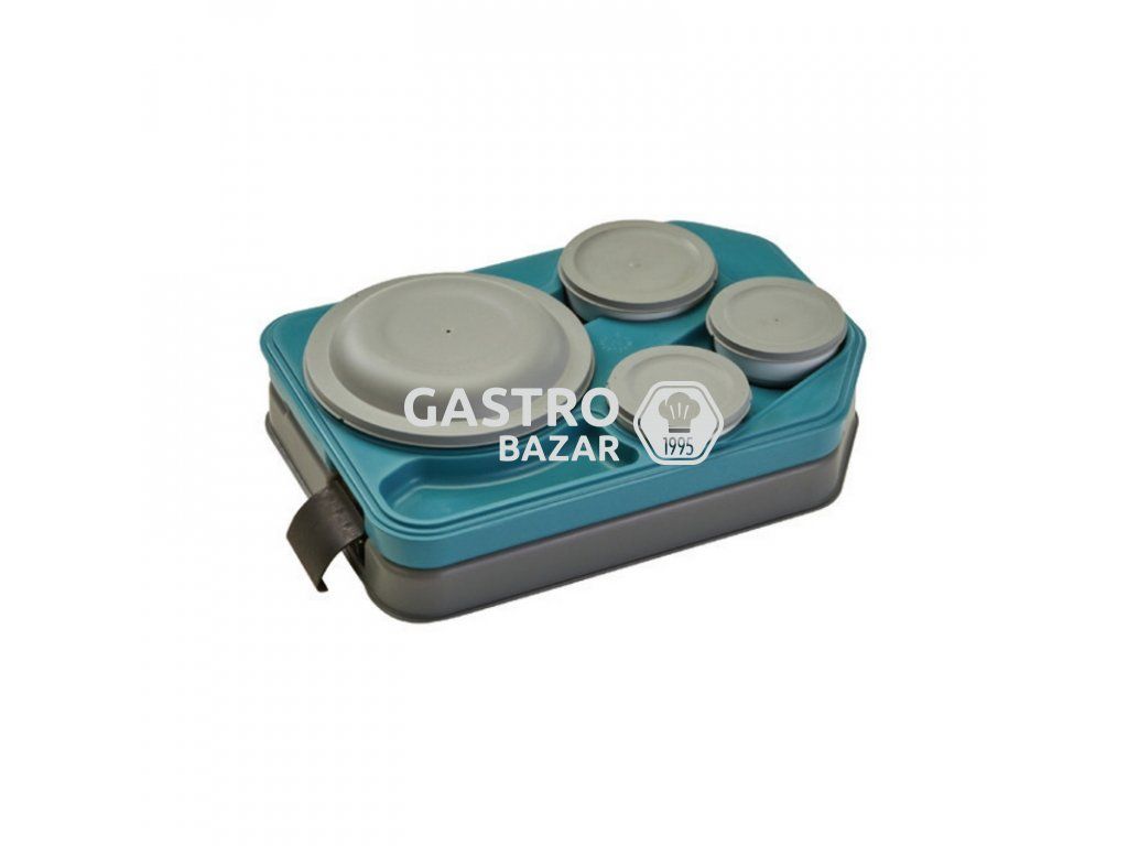 Servírovací systém Tablotherm byl navržen tak, aby až 1 hodinu udržel teplotu studených i teplých jídel zároveň. Tím zvyšuje komfort při přepravě jídla domů nebo do zdravotních zařízení. V setu najdete talíř s poklopem a dvě izolované misky s víčkem. Vytvarované důlky zabezpečují pokličky a napomáhají udržet teplotu pokrmů. K vydezinfikování ho pak stačí jen dát do myčky.