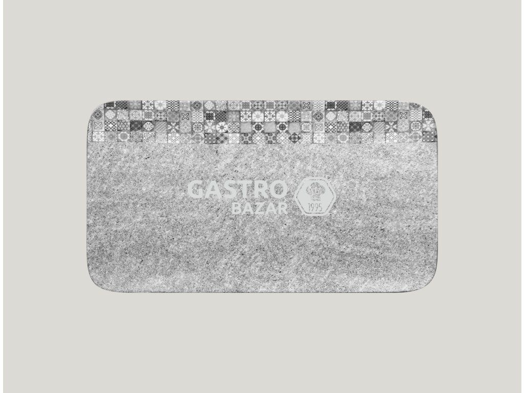 Díky obdélníkovému talíři z kolekce Splendour můžete do své restaurace přinést neopakovatelnou atmosféru Středomoří. Design talíře kombinuje vzor mozaiky a šedivé žuly a světle šedá barva umožní vyniknout vašim kulinářským specialitám. Kvalitní glazura na povrchu porcelánu zajišťuje dlouhou výdrž i při mytí v myčce nádobí či ohřevu v mikrovlnné troubě.