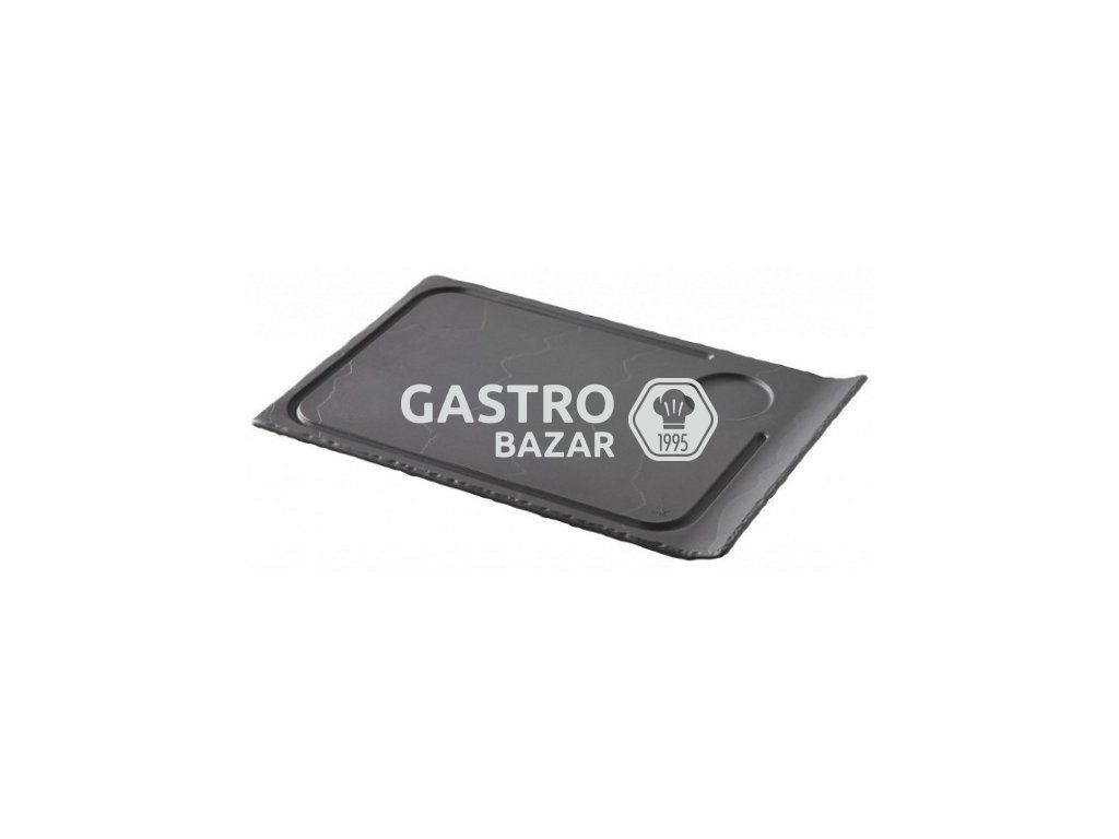 Basalt talíř obdélný s drážkou spojuje půvab břidlice s výhodami porcelánu. Jeho přírodní vzhled zdokonalí každé jídlo (maso, burgery, ryby apod.) a velikost talíře vám dovolí současně podávat i přílohy jako špízy, vařenou zeleninu, hranolky a spoustu dalších. Potěší vás také jeho praktičnost - zvednutá drážka pomáhá k lepší uchopení a jednoduššímu servírování.