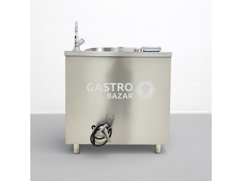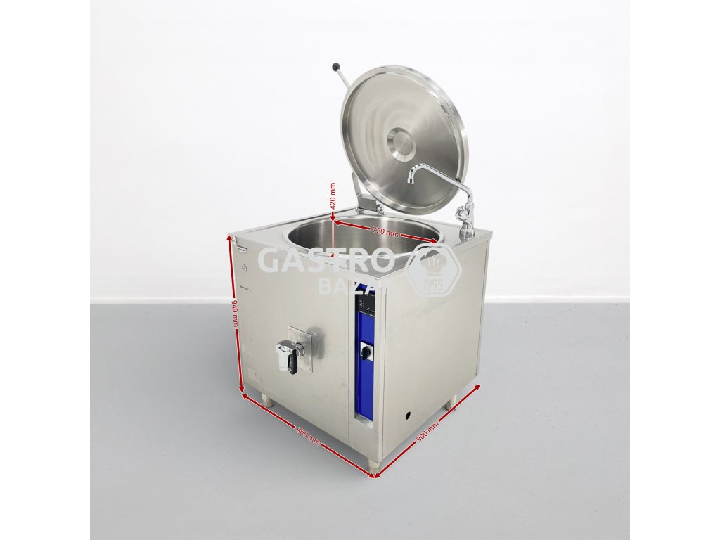 Stav: jedná se o bazarový (použitý) varný kotel, plně funkční po úpravě ovládání – může nést běžné známky používání bez vlivu na provoz.