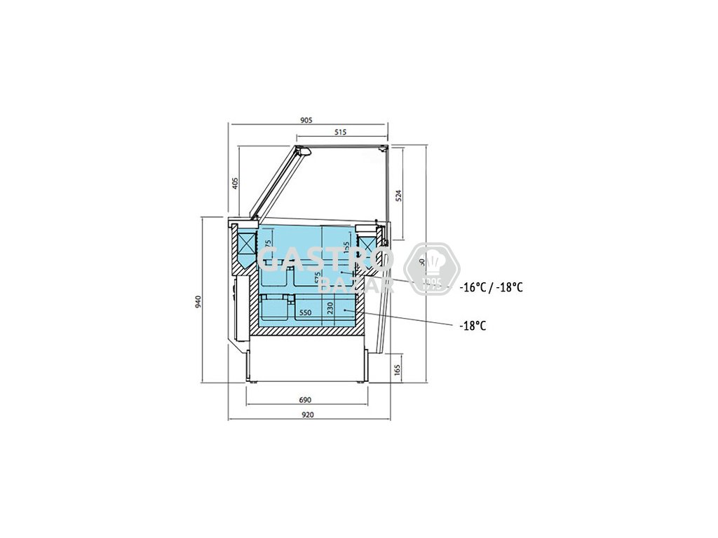 Zmrzlinový pult 1,56 x 0,92 m - světle modrý