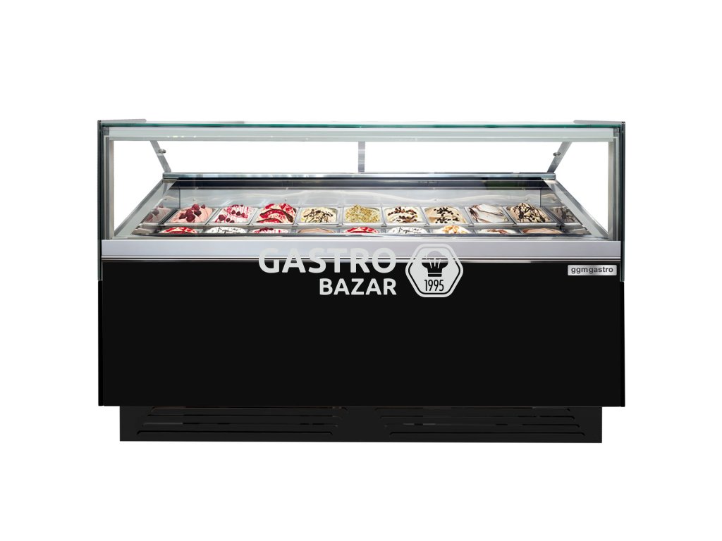 Vitrína na zmrzlinu - 1,7 x 1,1 m - černá - s LED