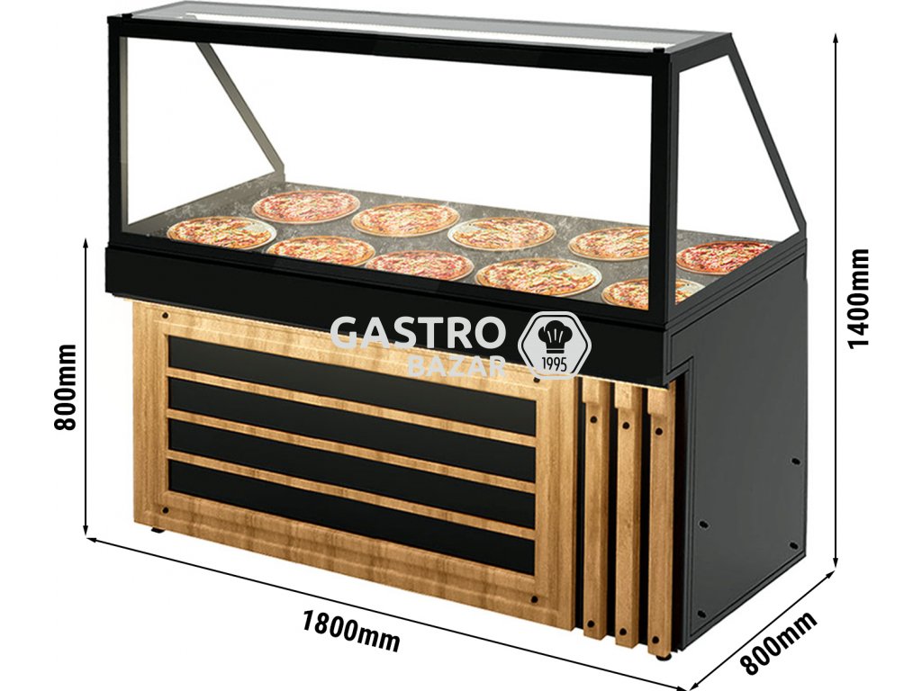 Vyhřívaná vitrína s vyhřívanou deskou - 1,8 x 0,8 m - teplota: do +60 °C