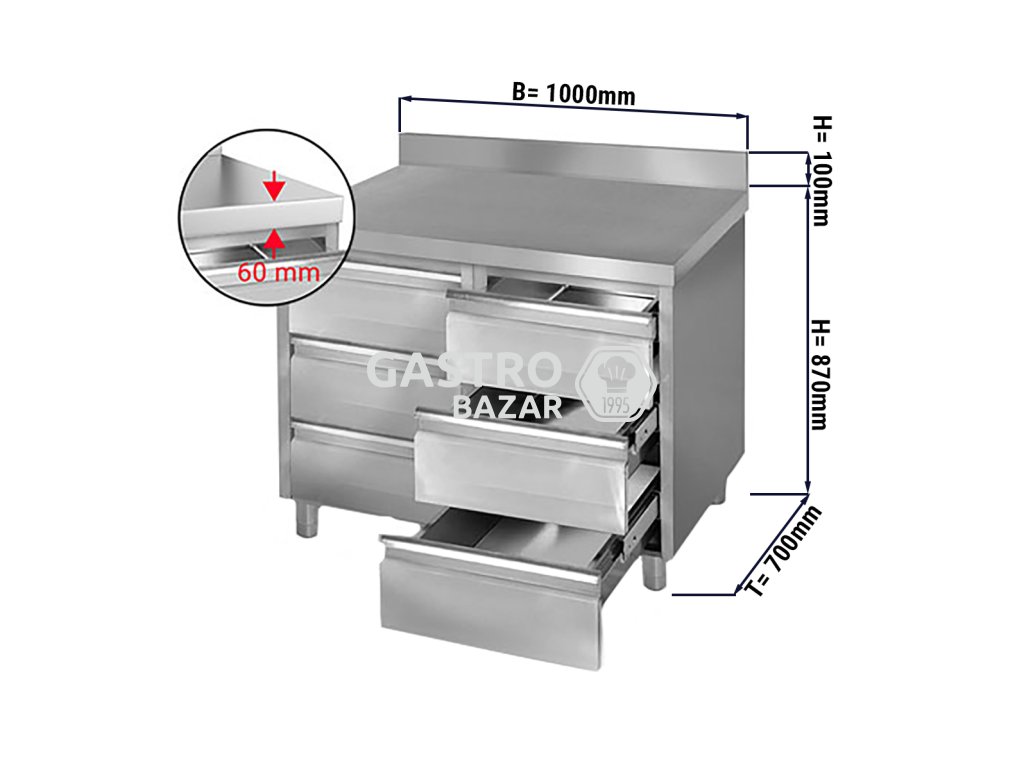 Zásuvková skříň PREMIUM - 1,0 x 0,7m - se 6 zásuvkami a zadním lemem